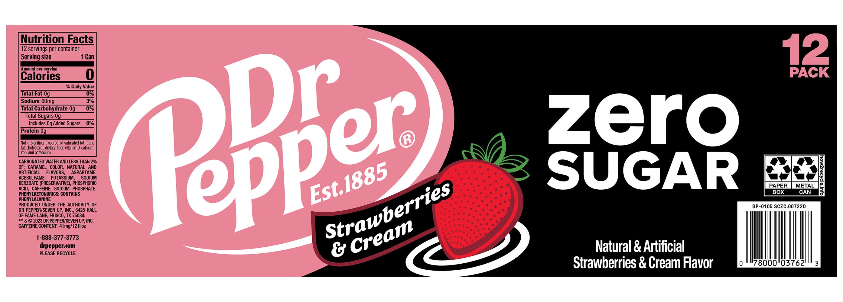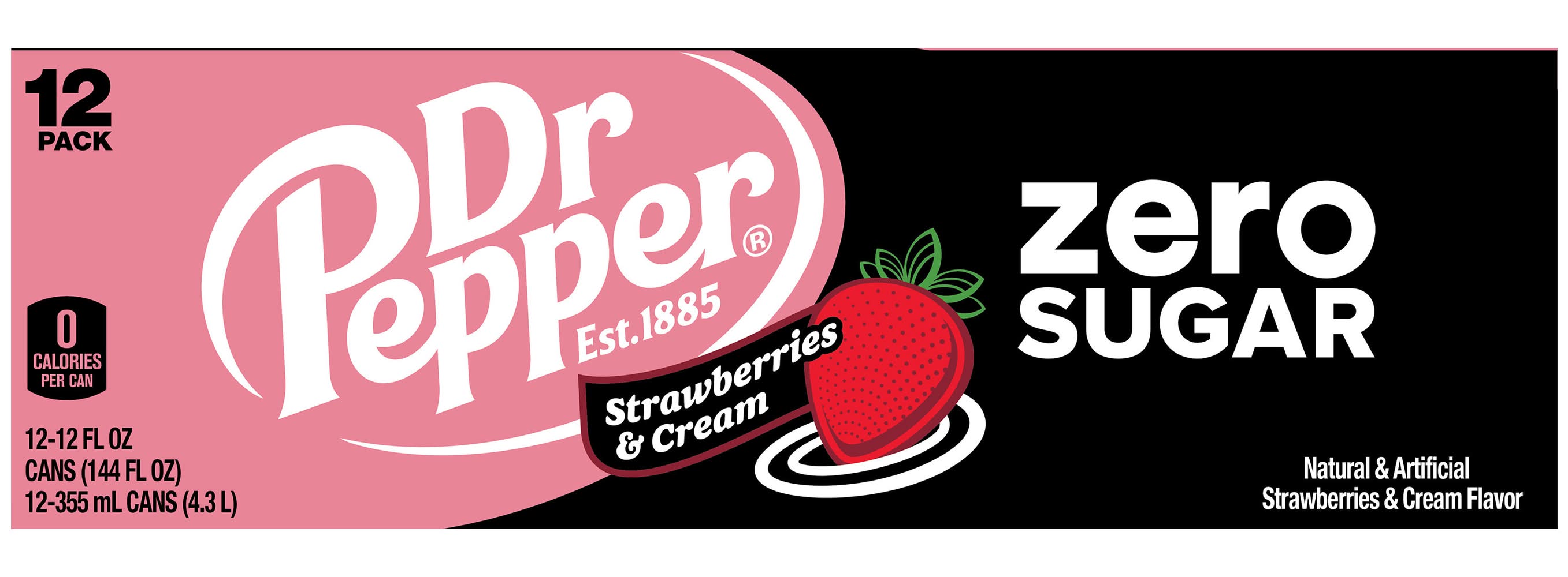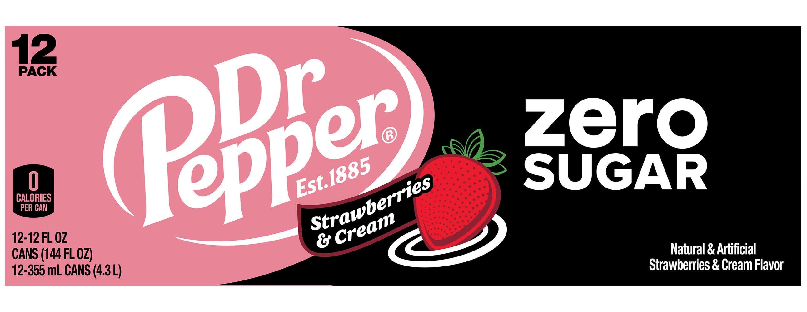 Dr Pepper Zero Sugar Soda, Strawberries-Cream (12 x 12 fl oz)