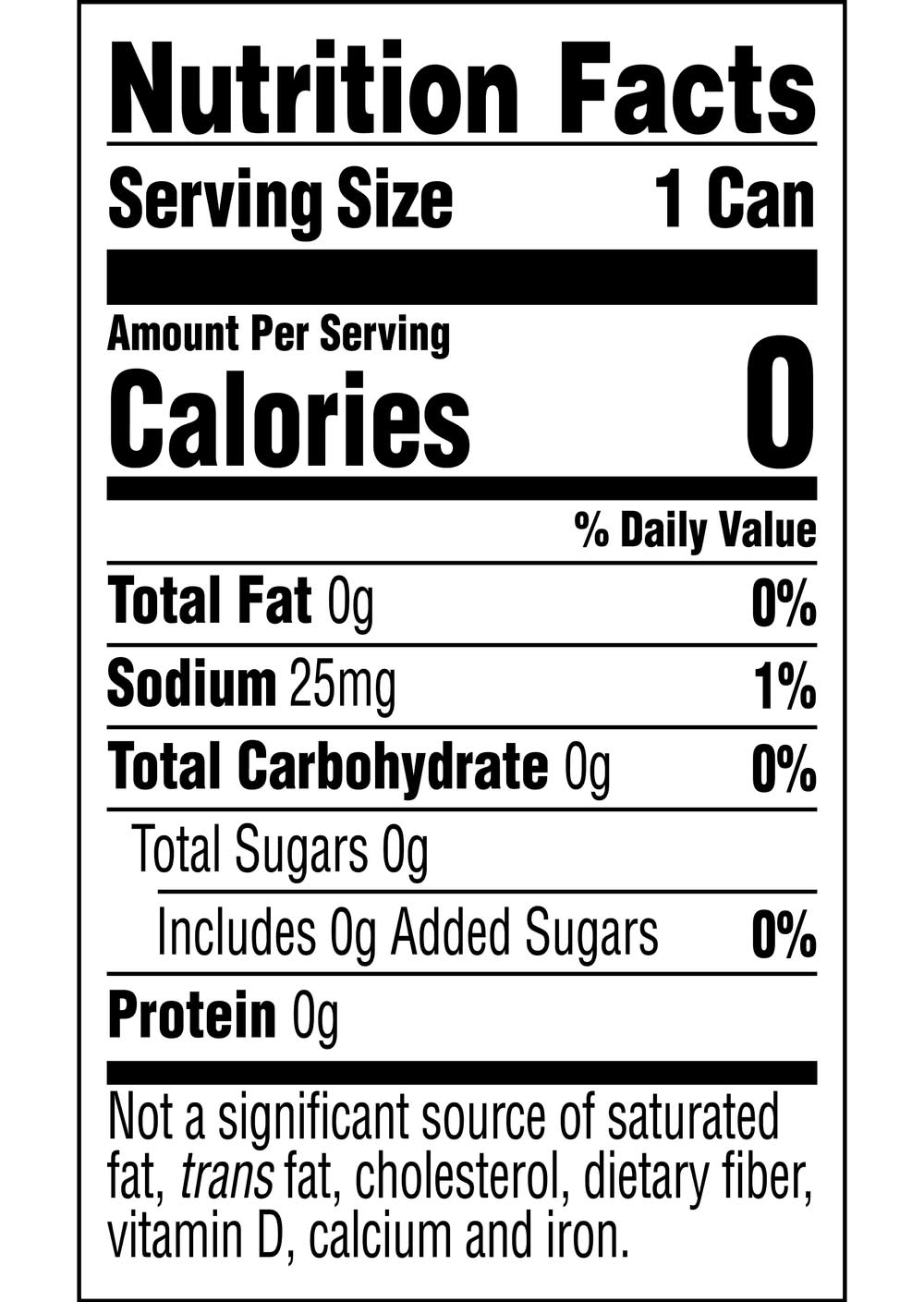 Ingredients: Carbonated Water, Less Than 2% Of: Citric Acid, Potassium Citrate, Natural Flavors, Potassium Benzoate (To Protect Taste), Aspartame, Acesulfame Potassium.