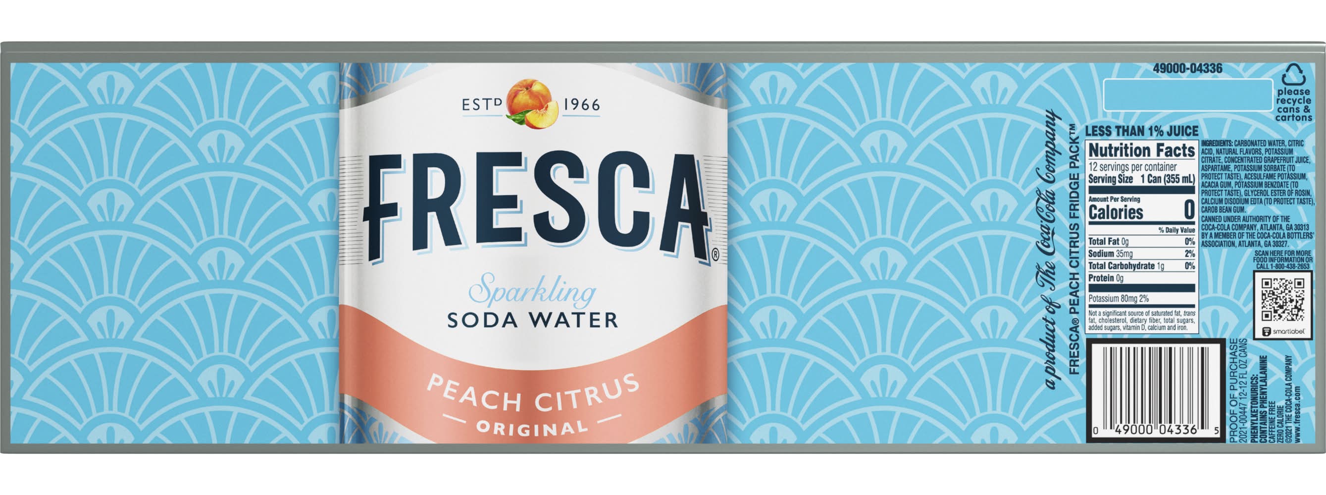 Fresca (meaning 'fresh' in Spanish) was introduced by the Coca-Cola Company in the United States in 1966. Since then, Fresca's citrus-flavored sparkling soda waters have been sold to markets all over the world. Enjoy the crisp taste of peach and grapefruit flavors in a no-sugar, no-caffeine, no-calorie soft drink. • Flavor: Peach citrus • Pack size: 12 • Packaging: Reusable