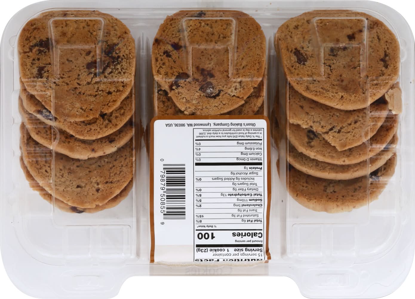 Cookies, Sugar-Free, Chocolate Chip • Olson's Baking Company, Lynnwood, WA, 98036 • Packaging: Reusable