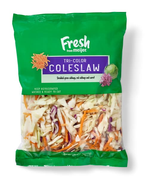 Fresh From Meijer's Tri-Color Coleslaw is a vibrant mix of cabbage and carrot it makes a nutritious addition to your meals.