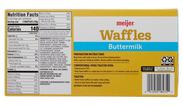 Meijer Buttermilk Frozen Waffles offer a classic brunch staple that can be enjoyed at home. These buttermilk-flavored waffles are frozen for quick preparation, making them a convenient breakfast option. They are versatile enough to be served with syrup and butter or as a side dish to eggs and bacon, fitting seamlessly into any meal setup.