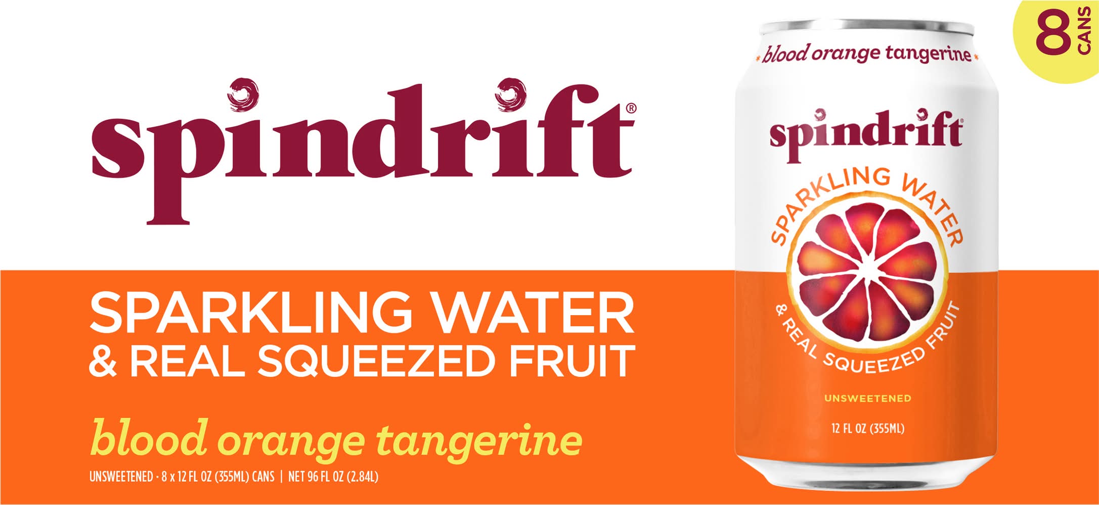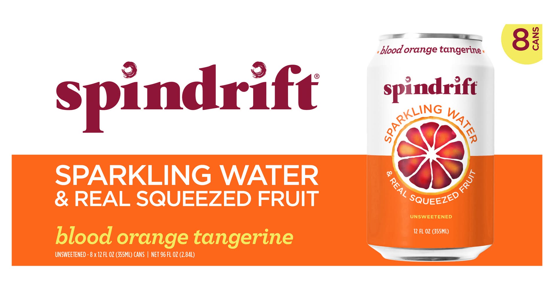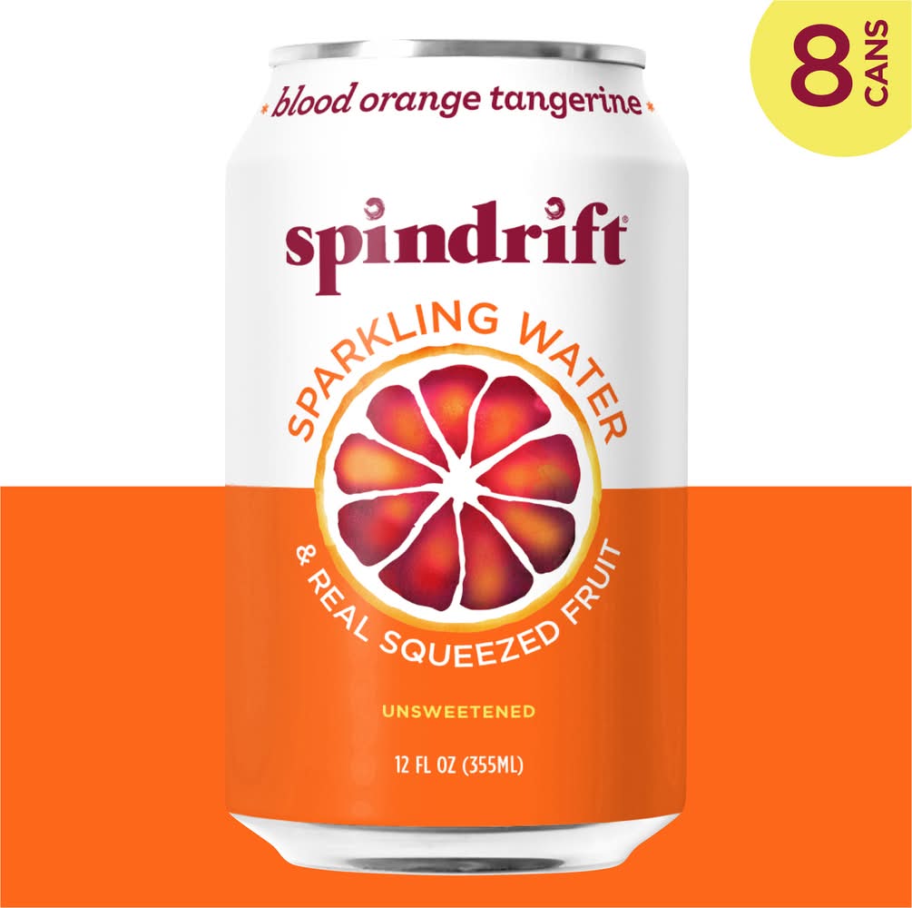 Spindrift Real Squeezed Fruit Sparkling Water, Blood Orange Tangerine (8 x 12 fl oz)