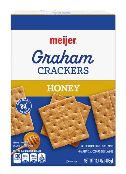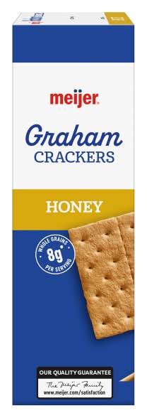 Meijer Honey Grahams are sweet, crunchy crackers specifically designed to be broken in half, making them ideal for crafting s'mores or enjoying as a campfire snack. These crackers pair excellently with milk chocolate and marshmallows.