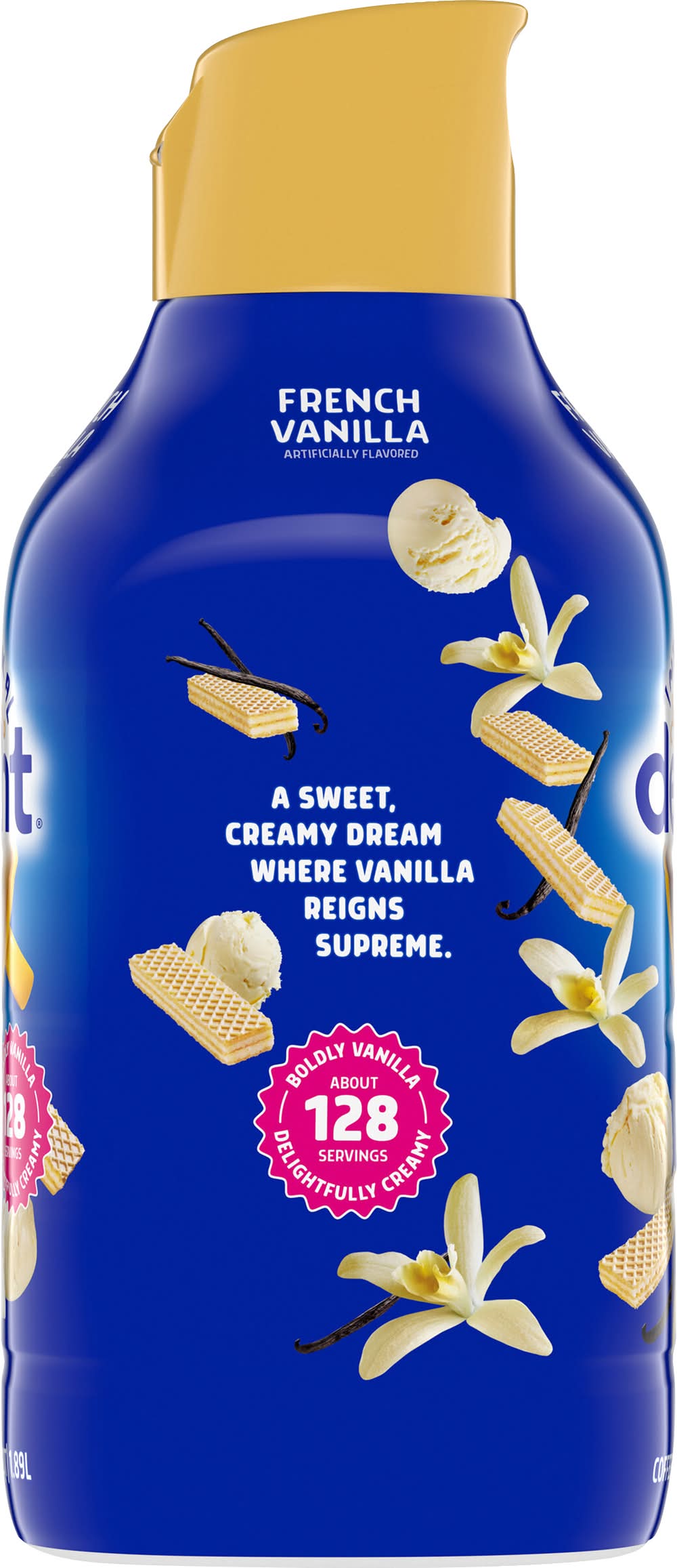 International Delight French Vanilla Coffee Creamer is the world of flavor your coffee's been waiting for. With vanilla flavor so bold, you'll be swept off your feet. And creaminess so delightful, you'll wonder why black coffee ever existed. Add some of our French Vanilla flavored creamer to dial up the joy in everyday moments. Check out all of the International Delight liquid creamer flavors to bring some excitement to your coffee break. Plus, International Delight Creamers are lactose free and gluten free, so they're easy to share. Fill your room with some International Delight Liquid Coffee Creamer or mess up your whole dang day. • Flavor: French vanilla • Number of servings: 128 • Packaging: Reusable