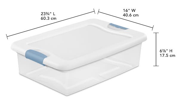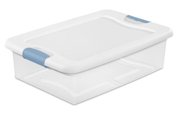 Sterilite Latching Box offers a clear storage solution, allowing for easy identification of contents. Its secure latching mechanism ensures items remain enclosed, yet it provides easy access when needed. Designed for efficient use of space, the box is suitable for under-bed storage and is ideal for organizing linens, towels, clothing, and other household items. The box's indexed lids are crafted to enable stacking of same-size boxes, optimizing vertical storage.