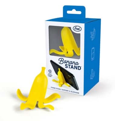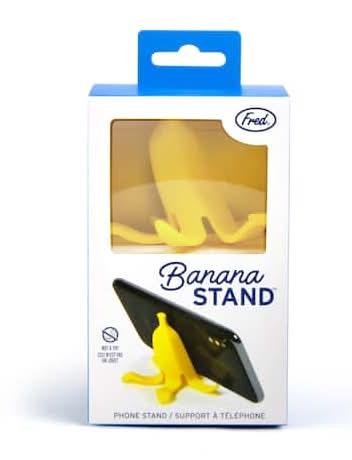 Buy the Fred Banana Stand Phone Stand at Michaels. Slip this skin under your phone and you'll have your very own Banana Stand. It's handy! It's appealing! It's a bunch of help when you need it. Yellow. 2.95" x 3.13" x 2.7" (7.5cm x 8cm x 6.9cm). Not a toy. Rubber. Fred Banana Stand Phone Stand Color: Yellow