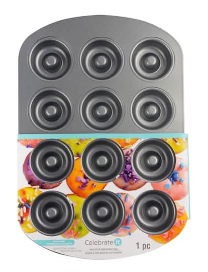 miniature doughnuts any day of the week—without even leaving the house. With this easy-to-use, 12-cavity pan, you can make regular, gluten-free or vegan mini doughnuts using your favorite recipe. 10.4" x 7.1" x 0.8" (26.5cm x 18cm x 2cm) overall size . Oven safe up to 450°F (232°C) . 12 cavities . Non-stick coating for easy food release and clean-up . Industrial grade carbon steel to prevent warping . Made without BPA, PFOA and PTFE