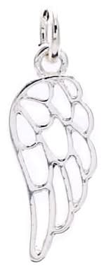 Design a necklace with this silver plated wing charm. This charm can also be connected to a bracelet or keychain.. 0.94" x 0.35" x 0.2" (23.8mm x 8.8mm x 0.5mm). Nickel free. Zinc alloy and iron. Color: Silver