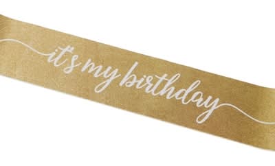 Celebrate It It's My Birthday Sash, Glittery Gold