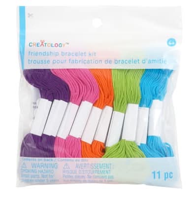 Find the Bright Floss Friendship Bracelet Kit by Creatology at Michaels. Making friendship bracelets is easy with this bracelet kit by Creatology. Complete with bright yarn skeins and a bracelet wheel, this kit includes everything you need to make personalized bracelets. Purple, hot pink, orange, light green and light blue. Polyester and paper. For ages 4 and up. 10 - 8 yd. (7.3 m) skeins of flossBraiding wheel. Braiding wheelInstruction sheet Color: Assorted