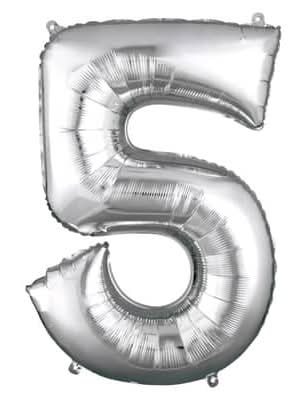 Inflated Anagram Number 5 Mylar Balloon, 34 in, Silver