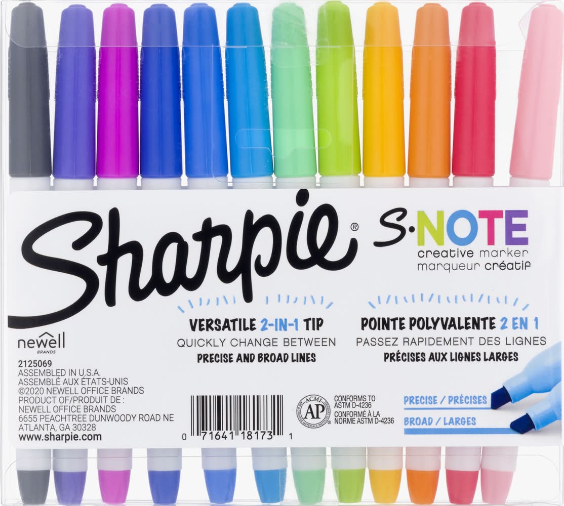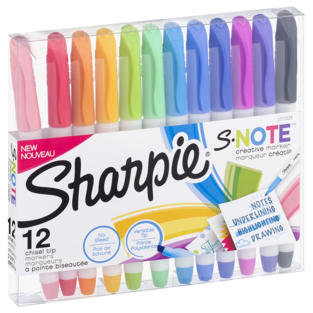 Sharpie S Note Chisel Tip Creative Markers, Assorted (12 ct)