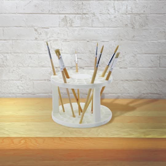 Buy the Paint Brush Organizer by Artist's Loft at Michaels. Keep your brushes organized and dry with this organizer by Artist's Loft. It holds 49 brushes and is easy to assemble, ideal for both the budding artist and professionals alike! White. 6.2" x 7.4" x 1" (15.7cm x 18.8cm x 2.5cm) package size. Styrene Color: White