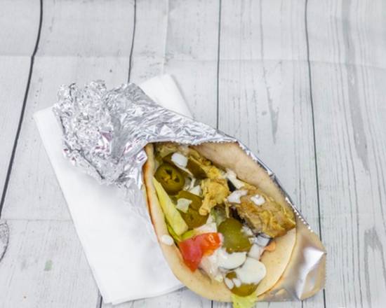 comes with lettuce tomatoes & please tell us if you want white sauce and hot sauce on it - please specify if you would like something removed/substituted