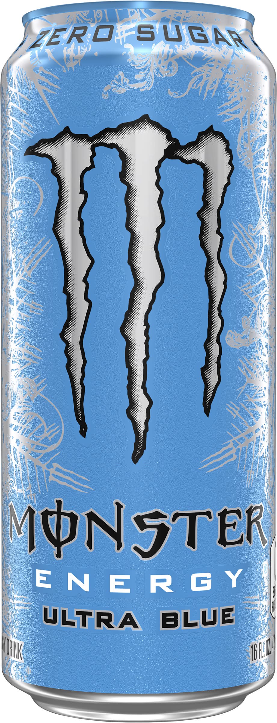 Energy Drink, Zero Sugar, Ultra Blue • Brand: Monster energy • low calorie, • Monster energy company, 1 Monster Way,Corona,CA,92879USA • Packaging: Reusable
