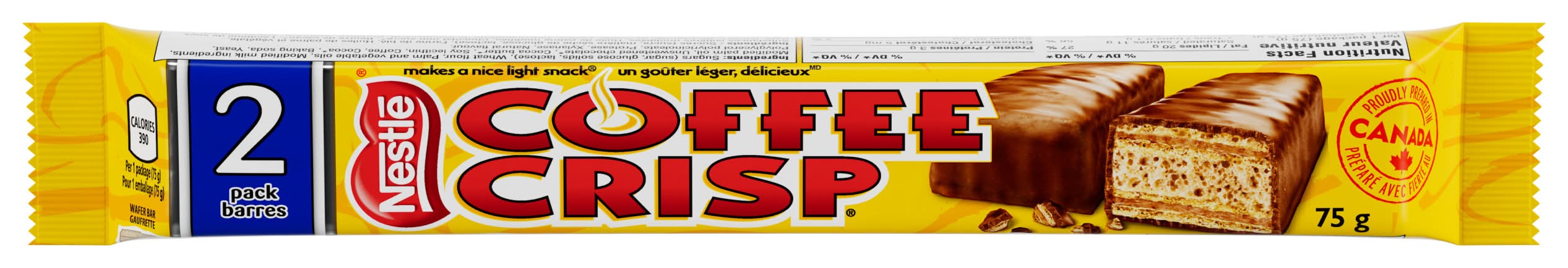 Share the harmony of crispy wafer, coffee-crème filling, and a thin chocolatey coating with coffee lovers in your life. With its classic crispy wafer and delightful coffee taste, the canadian coffee crisp always makes a nice light snack. It's no wonder why this uniquely canadian treat is a fan favourite – proudly produced in toronto, ontario! Brand: Coffee crisp