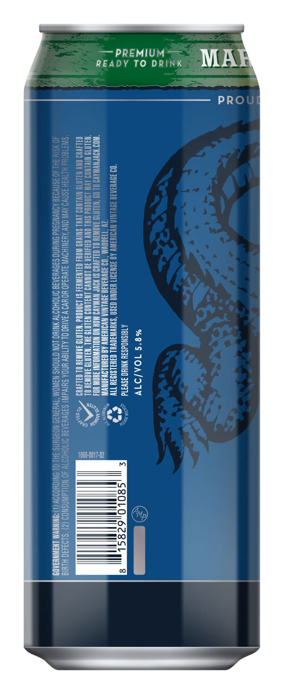 Flavored ale. Premium malt beverage with natural flavors. Proudly crafted. Premium ready to drink prepared. Crafted to Remove Gluten Crafted to remove gluten. Product is fermented from grains that contain gluten and crafted to remove gluten. The gluten content cannot be verified and this product may contain gluten. Please drink responsibly. • Alcohol by volume: 5.8% • American Vintage Beverage Co., 1700 South Broadway, Suite 450, Glendale, CA 91204 • Packaging: Reusable