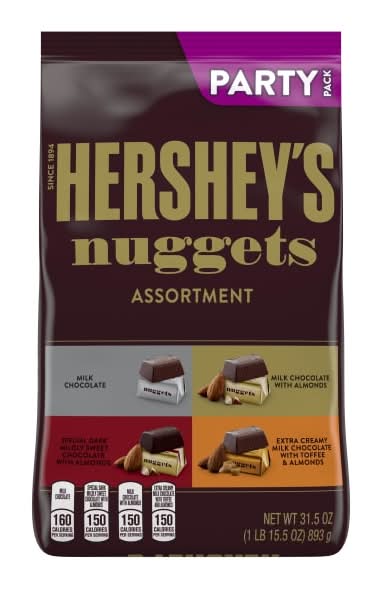 If you need a classic, chocolaty treat to give you a boost during the day, reach for 1 of these nuggets. The candy pieces come with 4 of your favorite flavors, including mildly sweet dark chocolate with crunchy almonds, giving your taste buds something special. Nugget pieces feature Special Dark Mildly Sweet Chocolate with Almonds, Extra Creamy Milk Chocolate with Toffee & Almonds, Milk Chocolate and Milk Chocolate with Almonds. Kosher and gluten free.