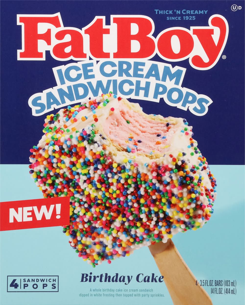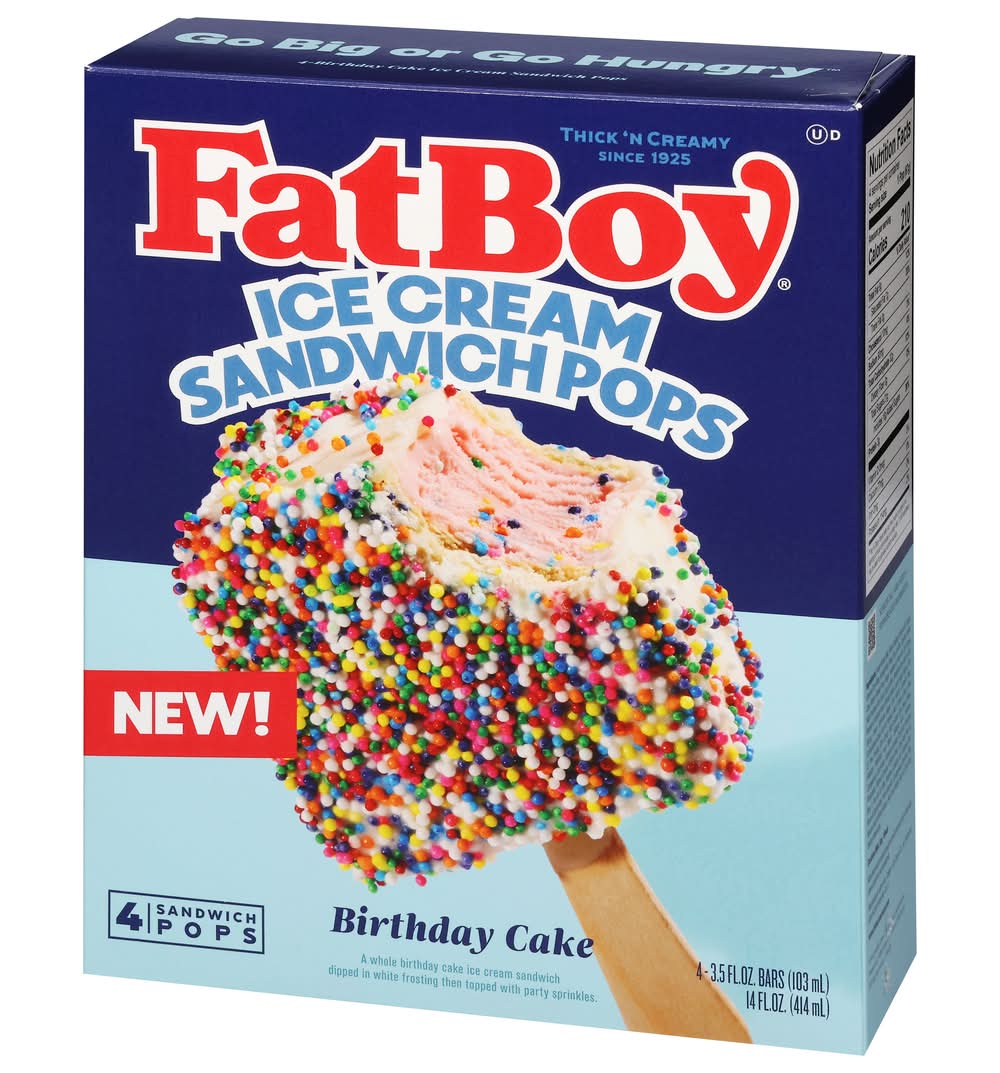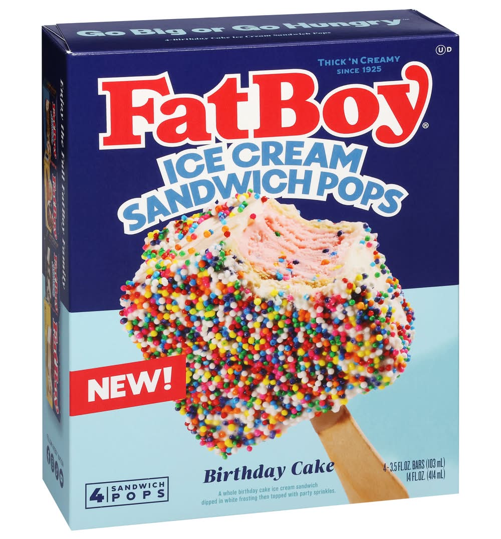 FatBoy Birthday Cake Sandwich Pops Ice Cream (4 x 3.5 fl oz)