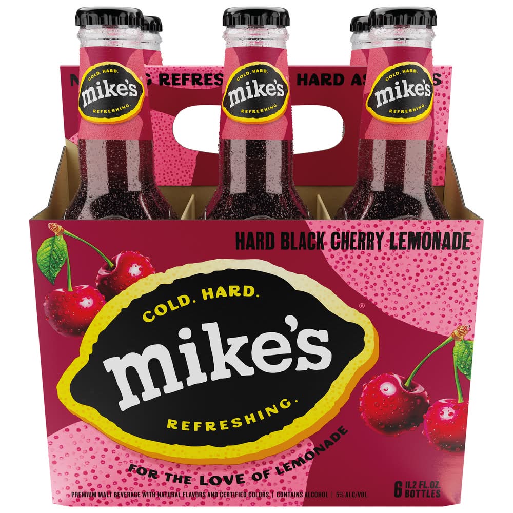 We started the hard lemonade with the single aim of creating the most refreshing & amazing tasting beverages. Every bottle is bursting with a delicious blend of lemon and fruit flavors mike’s hard black cherry lemonade is where black cherry sweetness meets zesty lemonade tartness. Each bottle is 5% abv and bursting with refreshing flavor. • Flavor: Black cherry lemonade • Pack size: 6 • Alcohol by volume: 5%