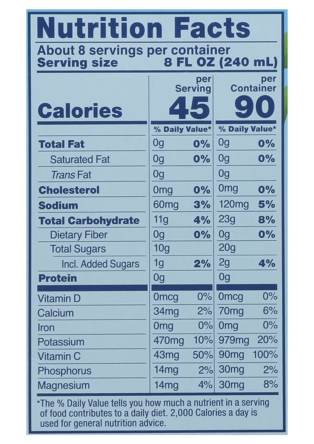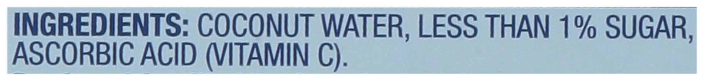 Ingredients: Coconut Water, Less than 1% Sugar, Vitamin C Ascorbic Acid.