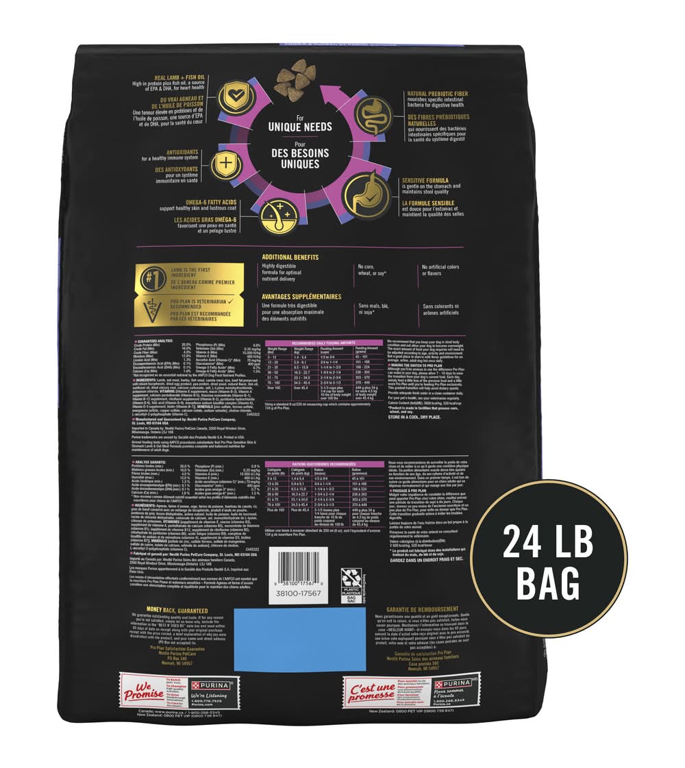 Purina Pro Plan Sensitive Skin & Stomach Dry Dog Food, Lamb & Oat Meal, Adult (24 lbs)