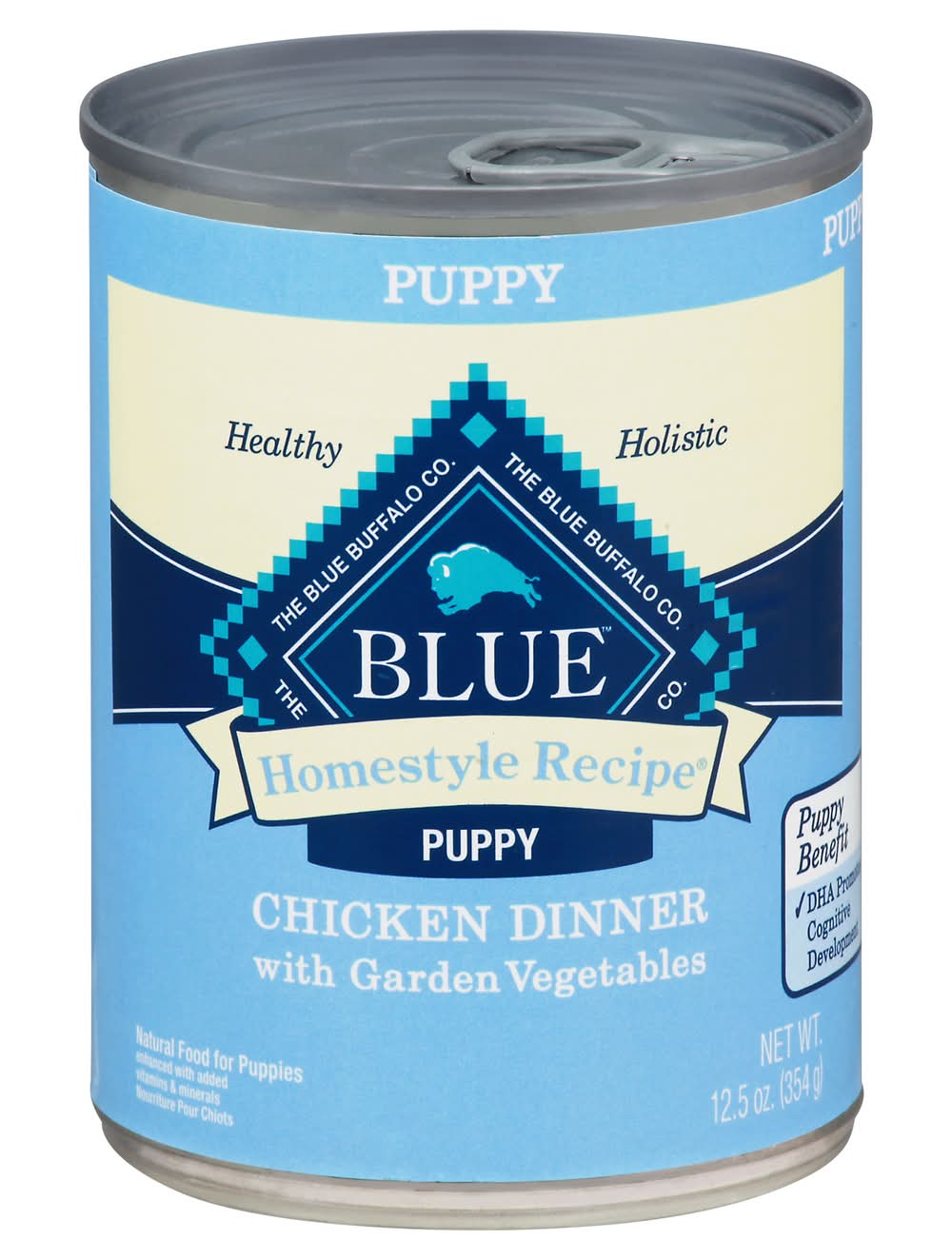 Natural food for puppies enhanced with added vitamins & minerals. No artificial flavors or preservatives. No corn, wheat or soy. Healthy holistic. True Blue Promise: Always starts with protein-rich chicken. No chicken/poultry by-product meals. Love them like family. Feed them like family. Puppy benefit. DHA Promotes cognitive development. Your puppy will love every bite of Blue Homestyle recipe chicken dinner with garden vegetables, and you'll love the fact that he's enjoying the very best ingredients, chosen specifically for puppies. • Size: Puppy • Blue buffalo, 11 River Road Wilton, CT 06897 USA,