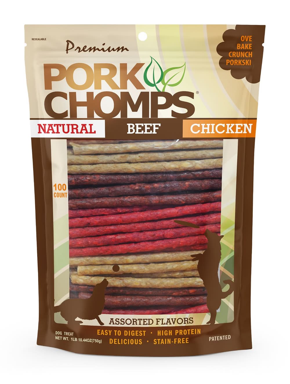 Pork Chomps Munchy Sticks Rawhide Free Dog Treat (Flavor: Pork, Size: 100 Count)