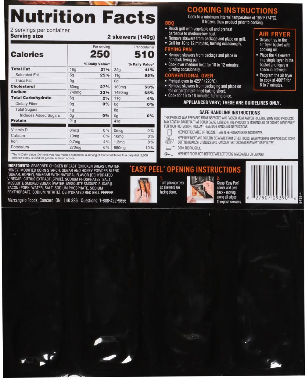 Bacon Wrapped Chicken Breast Skewer • Flavor: Honey bbq • Pack size: 4 • Number of servings: 2