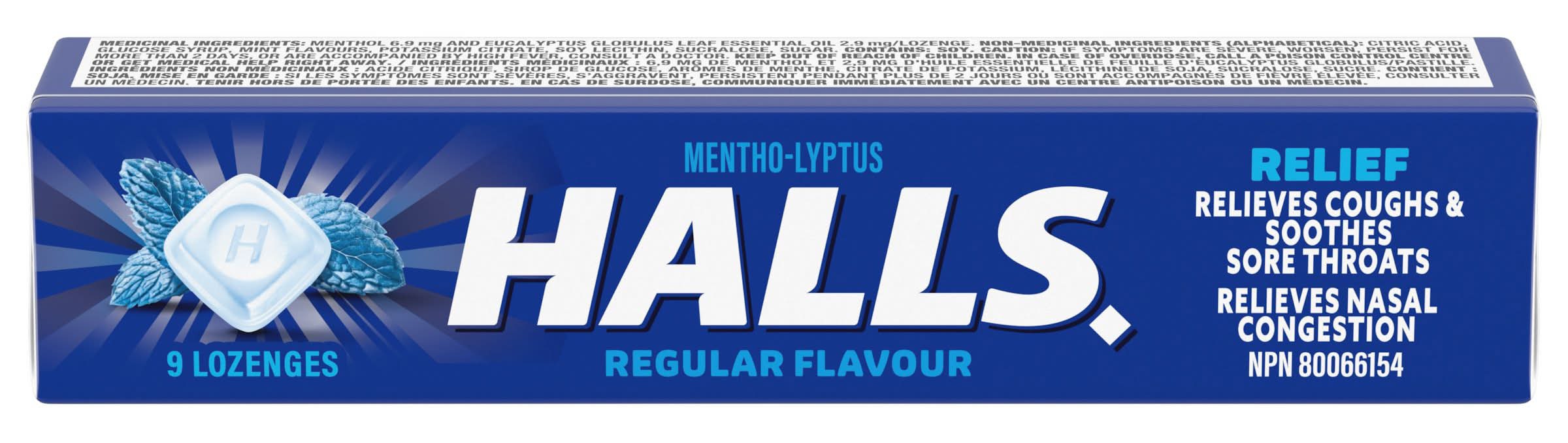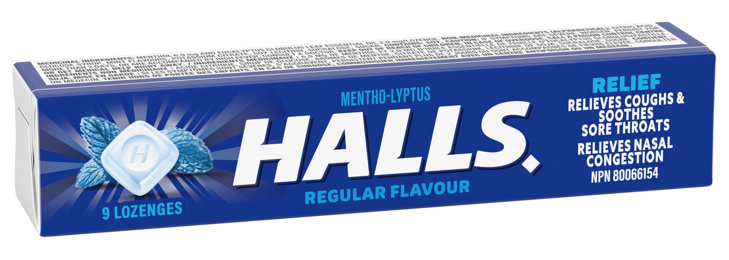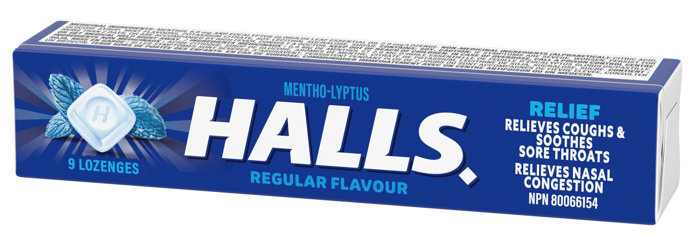 HALLS Mentho-Lyptus Regular Cough Drops, 9 Lozenges. Relieves Coughs & Soothes Sore Throats. Relieves Nasal Congestion.