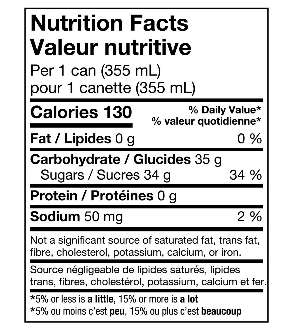 Ingredients: CARBONATED WATER, SUGAR, GLUCOSE-FRUCTOSE, CITRIC ACID, SODIUM BENZOATE, COLOUR, NATURAL FLAVOUR