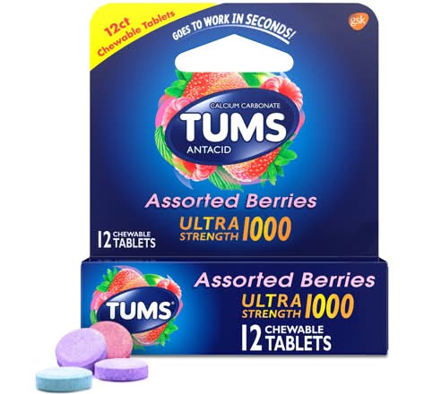 Tums Calcium Carbonate/Antacid, Ultra Strength, 1000 Mg Chewable Tablets, Assorted Berries 1000mg Bottle