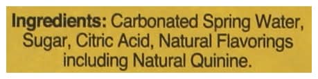 Ingredients: Carbonated Spring Water, Sugar, Citric Acid, Natural Flavorings Including Natural Quinine