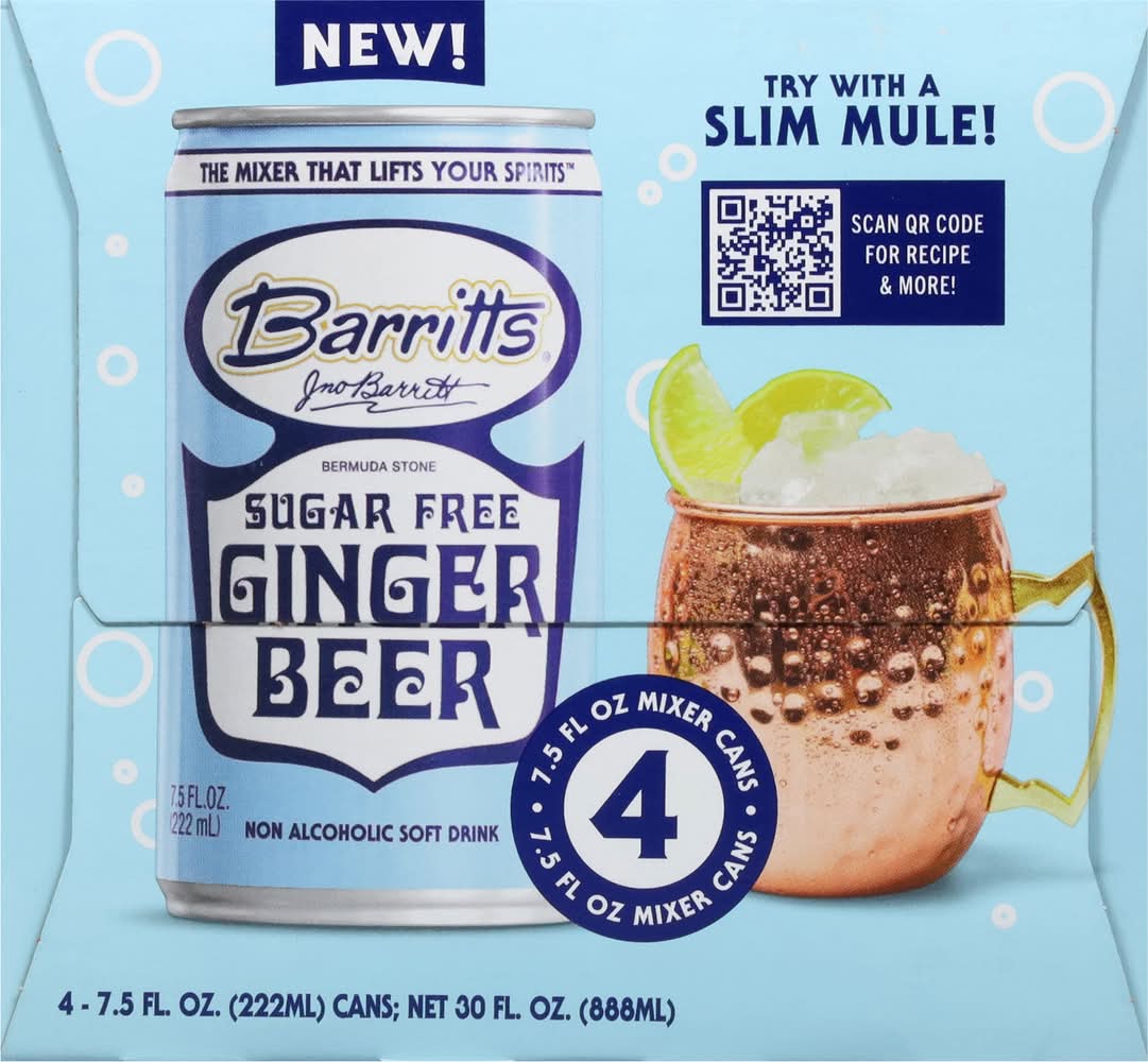 Barritts Sugar Free Ginger Beer (4 x 7.82 oz)