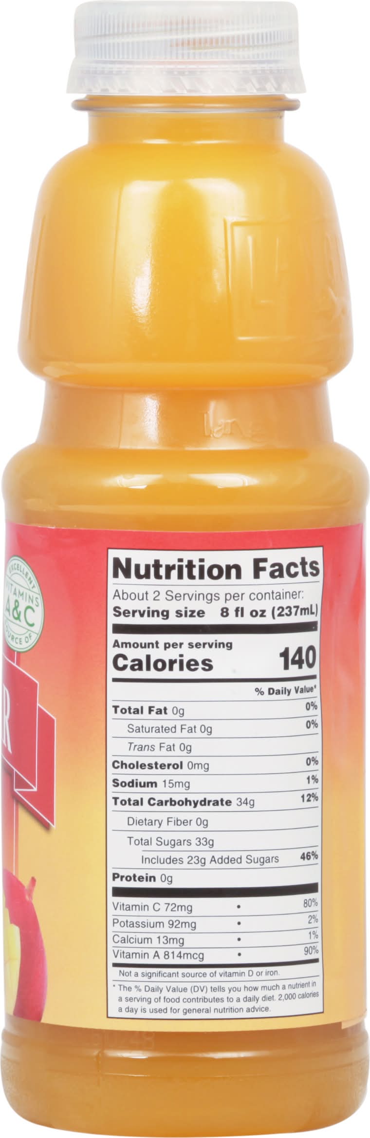 Ingredients: Filtered Water, Mango Puree Concentrate, Sugar, Mango Puree, Natural Flavor, Citric Acid, Ascorbic Acid (Vitamin C) and Pectin Contains: 'Free From Gluten'
