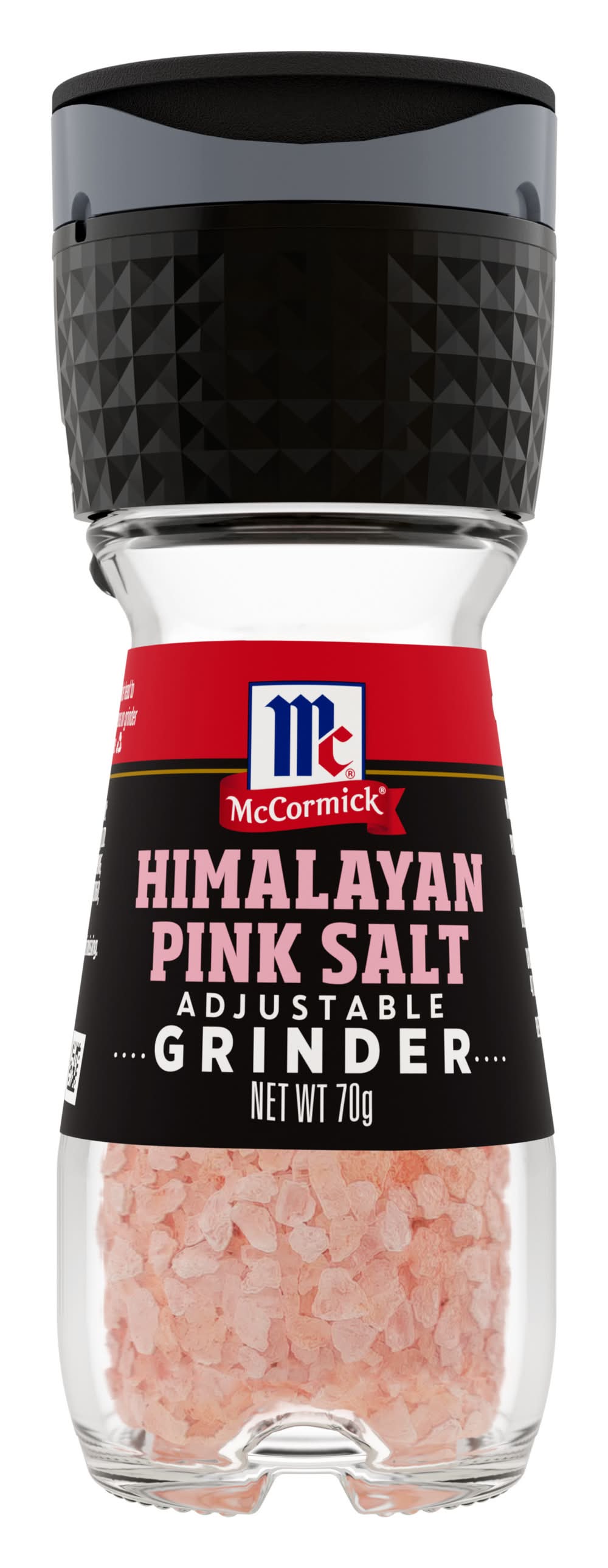 Himalayan Pink Salt adds a burst of pink color and bold taste, making it a must-have seasoning for any dish. With a simple twist of the salt grinder, it releases crisp, clean flavor directly onto salads, eggs, seafood or chicken. McCormick & Co., Inc., Hunt Valley,MD,21031-110