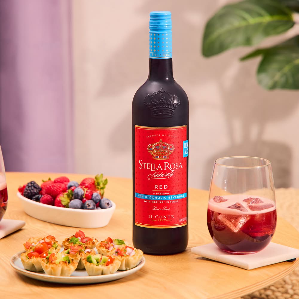 Stella Rosa Naturals Red Non-Alcoholic Wine is a proprietary blend of several red grape varietals including Brachetto. With fun, fresh and fruity in mind, our team of Italian winemakers sought out to craft the same great taste of Stella Rosa, but in a non-alcoholic form. The wine contains natural carbonation. Once the desired sweetness is achieved, the wine is centrifuged and bottled. Its natural acidity and low pH strike the perfect balance with the wine’s inherent sweetness. It is not cloying or heavy. Try this delicious (and guilt-free) Stella Rosa Naturals Red chilled or over ice in your favorite cocktail/mocktail. It’s the perfect beverage for any time of day and for any occasion. Number of servings: 5