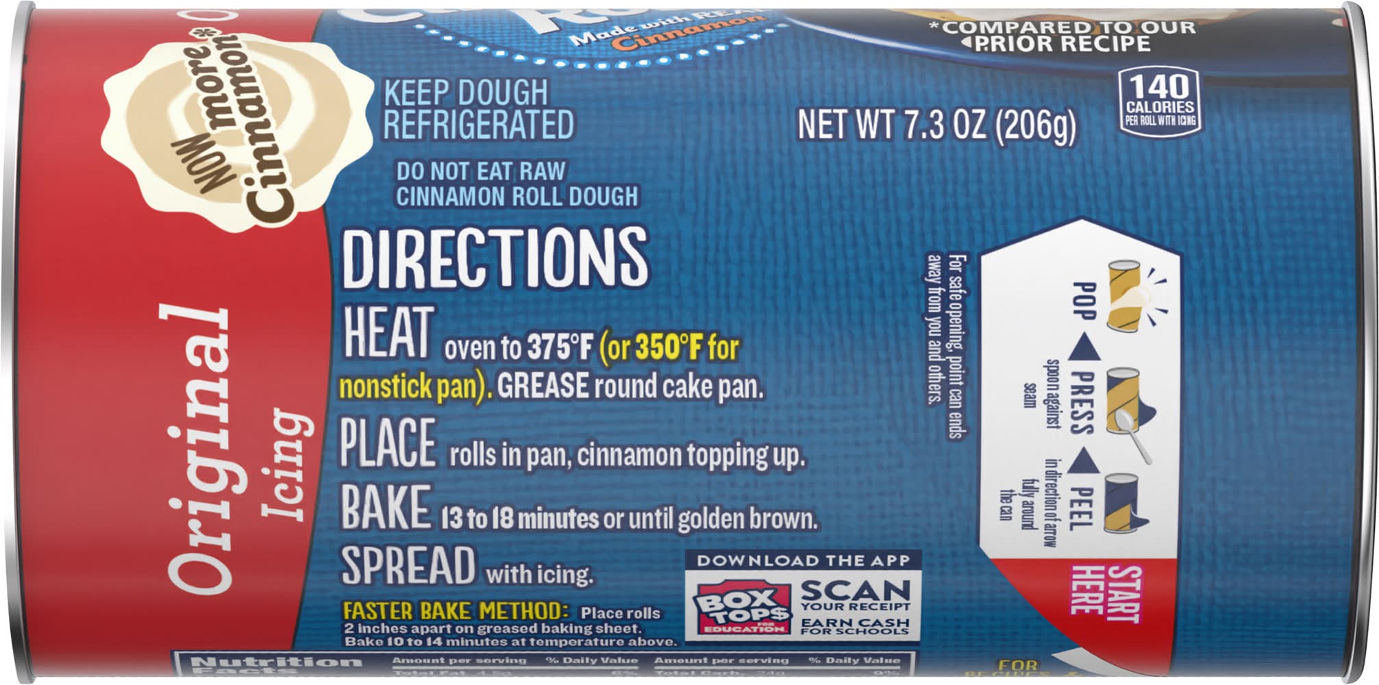 Directions for use: Keep dough refrigerated. Do not freeze or microwave unbaked poppin' fresh dough. Pop. Press spoon against seam. Peel in direction of arrow fully around the can. For safe opening, point can ends away from you and others. Best if used by date on can end. Storage recommendation: Keep dough refrigerated. Do not freeze or microwave unbaked poppin' fresh dough.