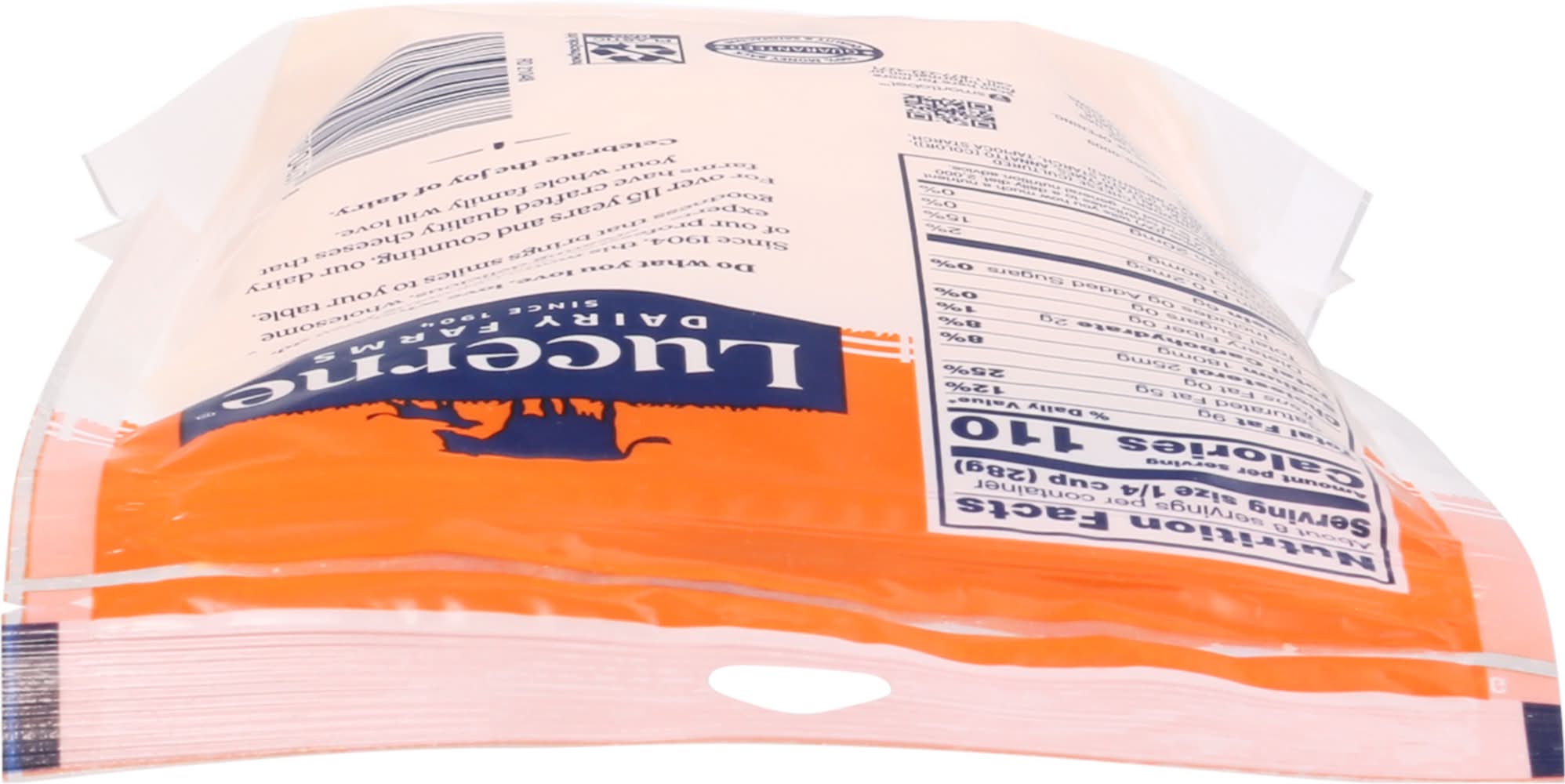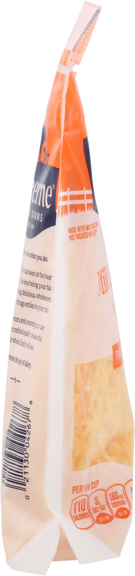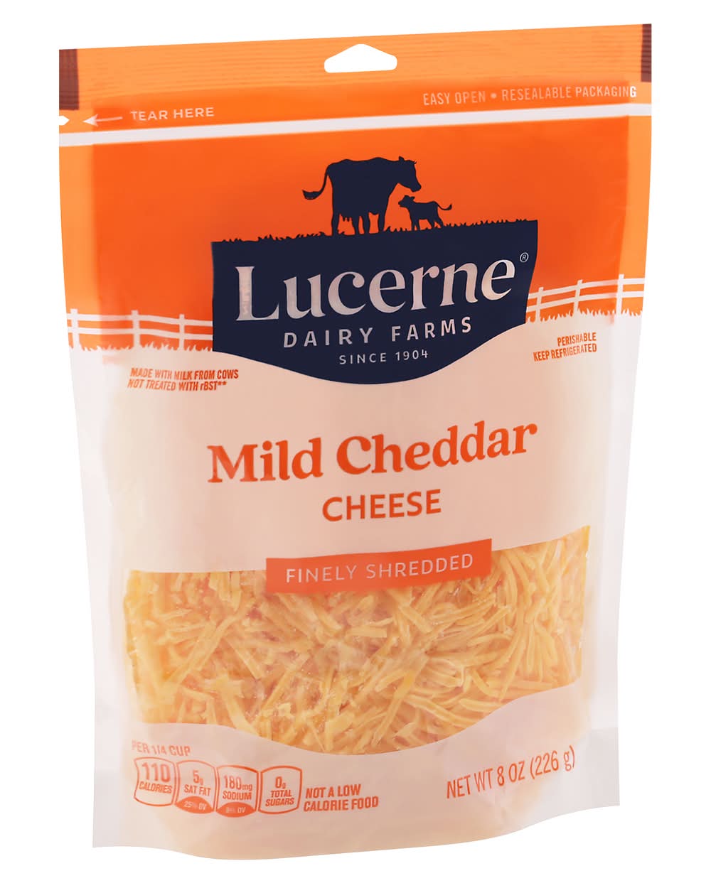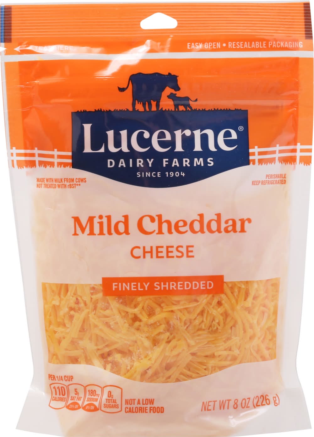 Ingredients: Cheddar Cheese (Cultured Pasteurized Milk, Salt, Enzymes, Annatto [Color]), Anti-Caking Blend (Potato Starch, Tapioca Starch, Natamycin [Mold Inhibitor]). Contains: Milk