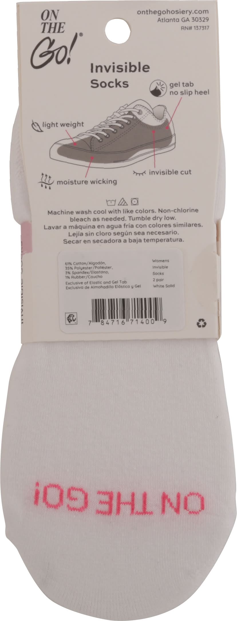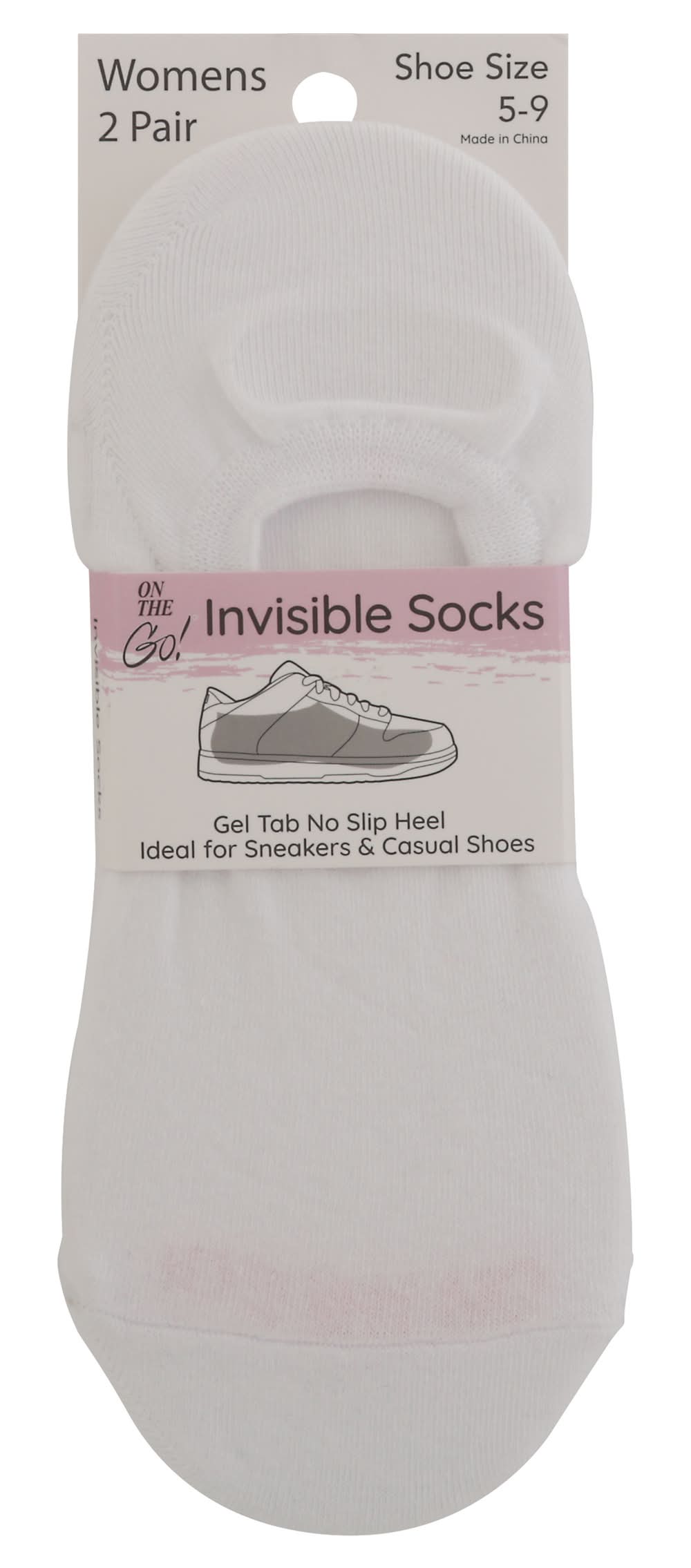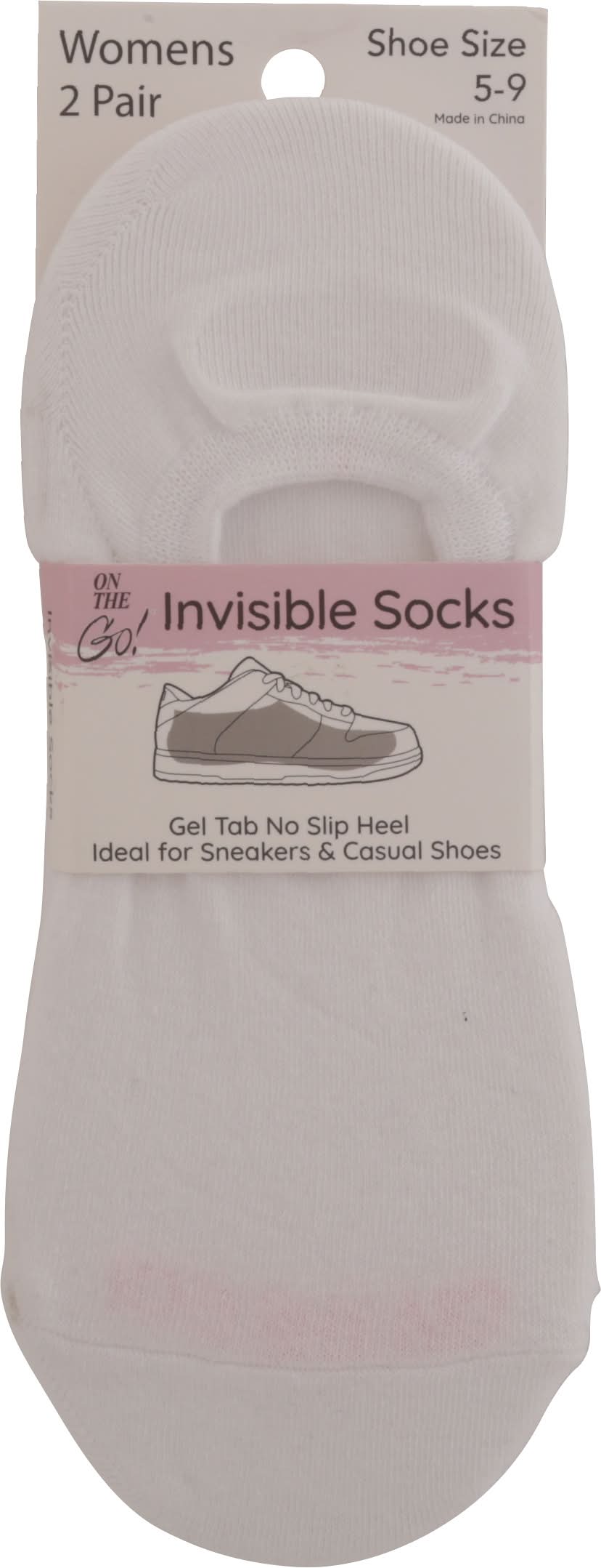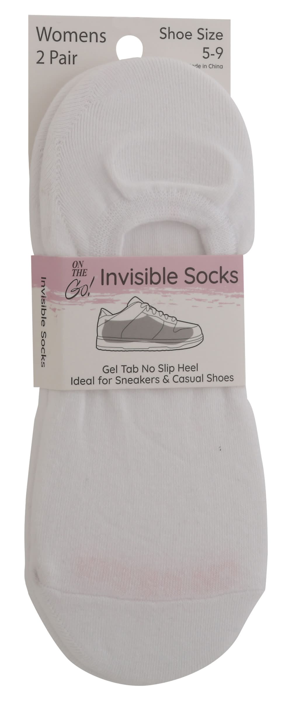 On the Go! Womens Invisible Socks, 5-9 (2 ct)