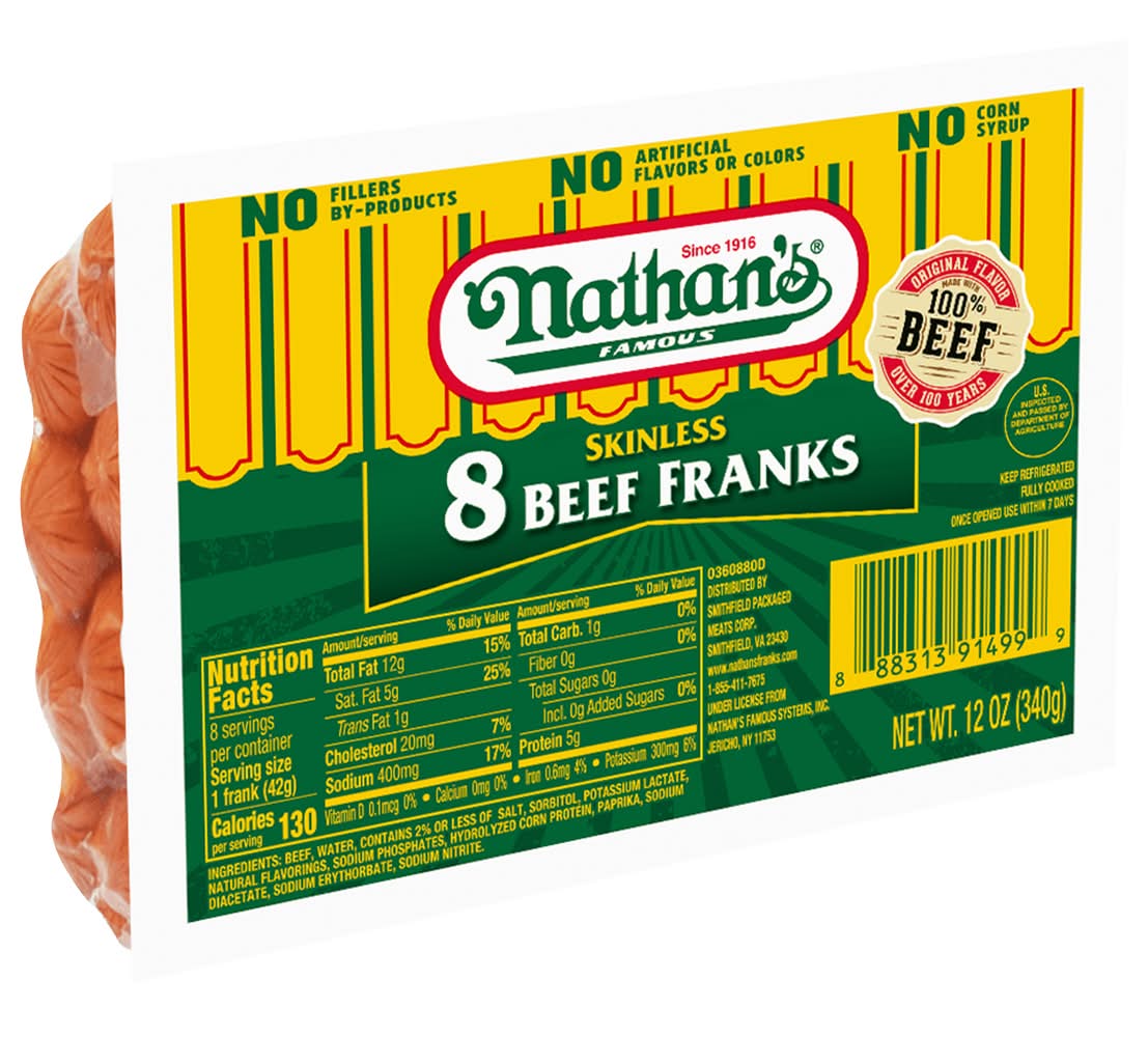 Nathan's Famous Skinless Beef Franks (12 oz, 8 ct)