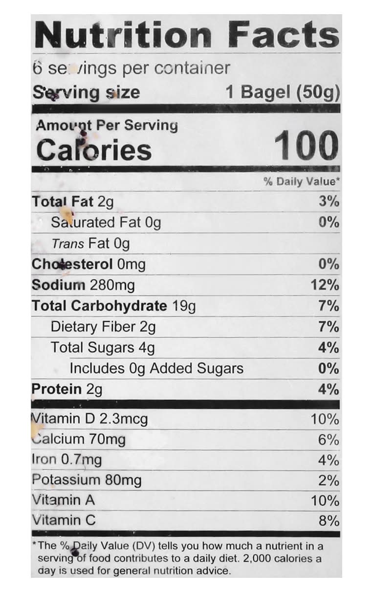 Ingredients: Water, Potato Starch, Soya Flour, Tapioca Starch, Glycerine, Brown Rice Flour, Chickpea Flour, Cellulose, Super Seed and Fruit Blend (Organic Sprouted Whole Millet, Organic Sprouted Whole Buckwheat, Flax, Salba Chia, Organic Quinoa, Dehydrated Whole Apples, Cranberries, Cherries, Oranges, Blueberries, Strawberries and Shiitake Mushrooms), Sea Salt, Sunflower Oil, Rice Syrup, Grape Juice, Potato Fiber, Natural Flavor, Xanthan Gum, Yeast, Cultured Rice Flour, Cultured Brown Rice, Brown Rice, White Distilled Vinegar, Sodium Acid Pyrophosphate, Sodium Bicarbonate. Toppings: Coarse Sea Salt, Sesame Seeds, Poppy Seeds, White Onion Flakes, Garlic Flakes Contains: Soybeans, Sesame, Eggs