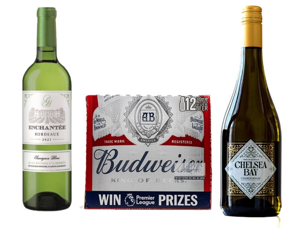 12 Budweiser Lager Beer 300ml Bottle And 2 Premium White Wine 75cl