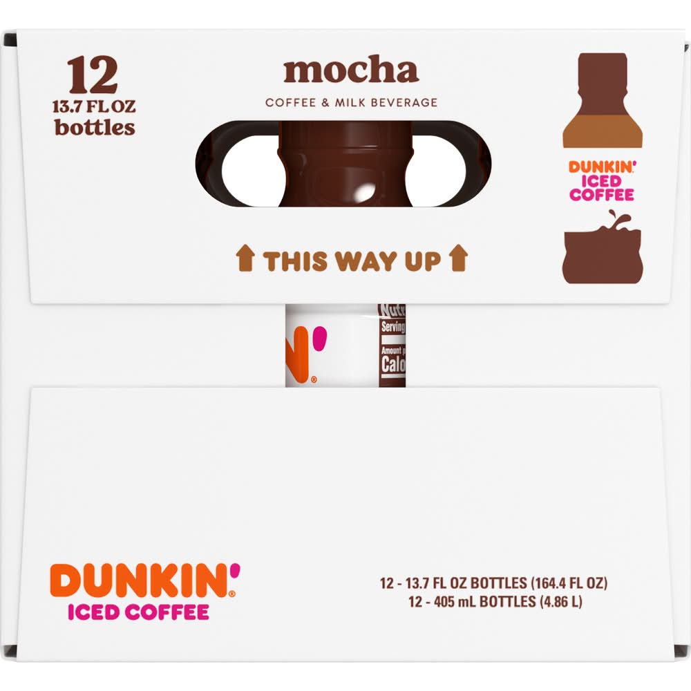 Dunkin' Mocha Iced Coffee Bottles, 13.7 fl oz, 12 Pack • Pack size: 12 • Size: 1