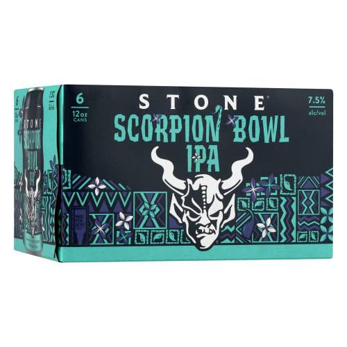 Stone Scorpion Bowl IPA Beer is crafted using a distinctive blend of Mosaic, Loral, and Mandarina Bavaria hops. This beer presents a unique floral and citrus aroma, complemented by a mouthwatering fruit punch flavor. • Pack size: 6 • Alcohol by volume: 7.5%
