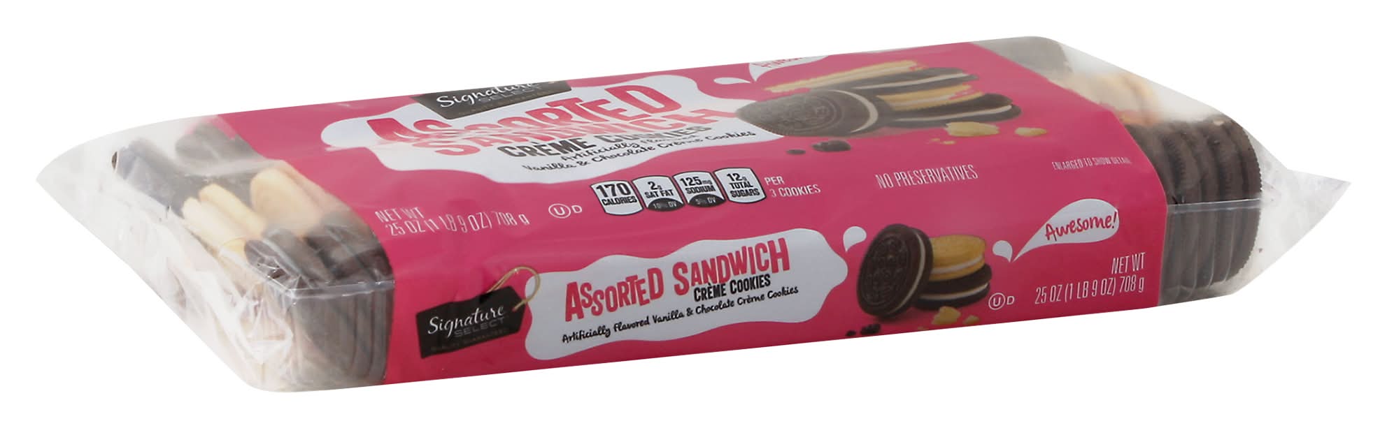 Signature Select Assorted Sandwich Creme Cookies, Vanilla-Chocolate (25 oz)