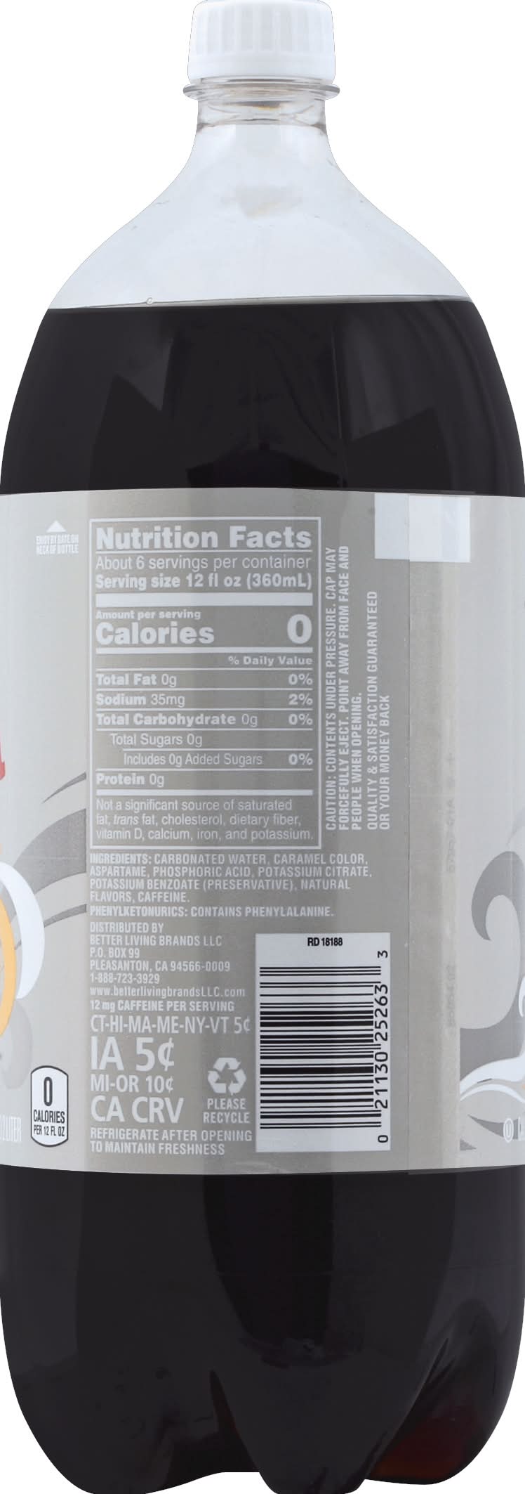 Ingredients: Carbonated Water, Caramel Color, Aspartame, Phosphoric Acid, Potassium Citrate, Potassium Benzoate (Preservative), Natural Flavors, Caffeine.