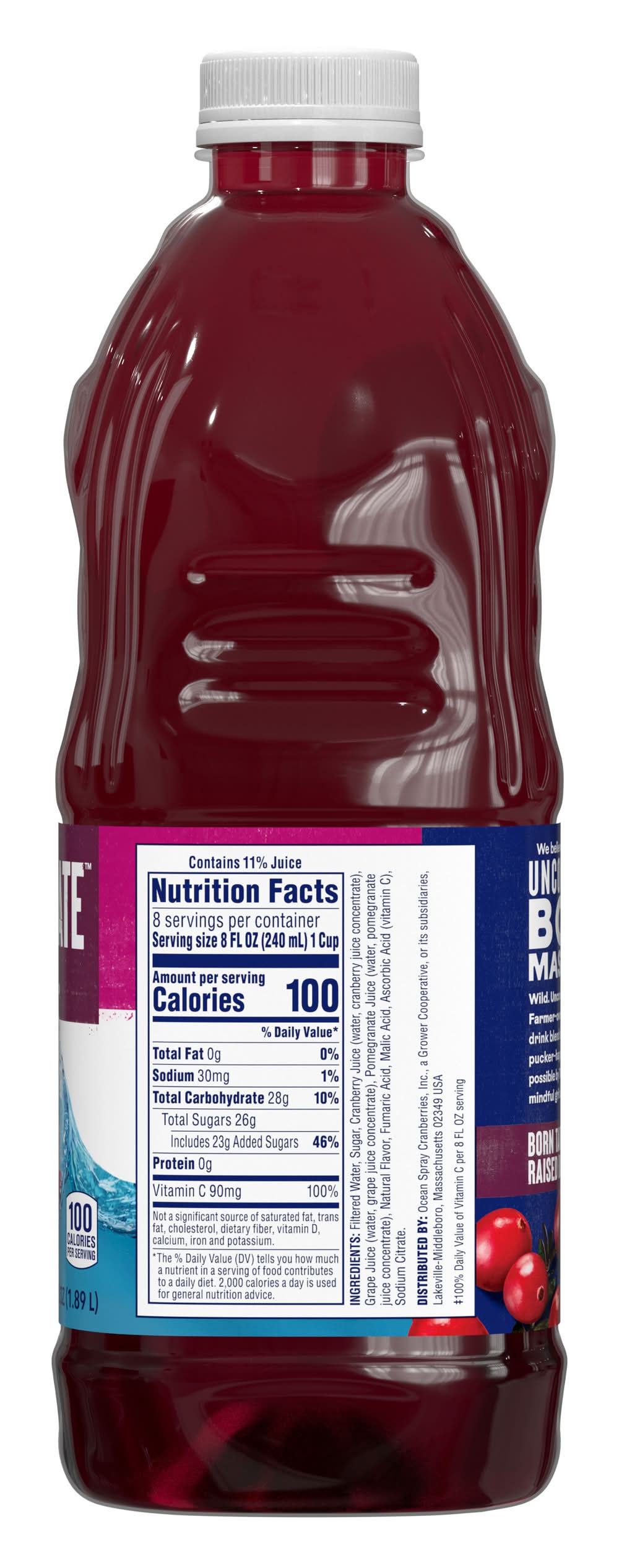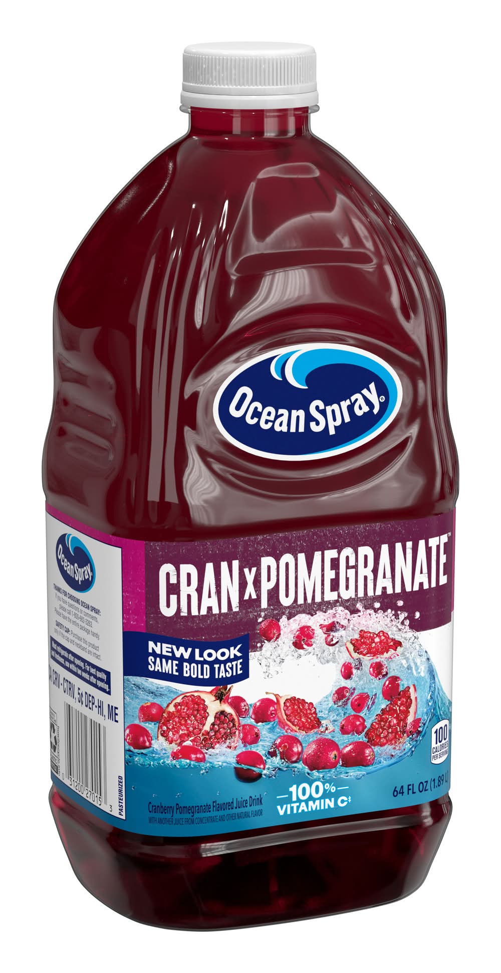 Ocean Spray Cran-Pomegranate Juice Drink offers a blend of cranberry and pomegranate flavors in a 64 fluid ounce bottle. This juice drink provides a refreshing taste experience. • Flavor: Cranberry-pomegranate • Juice drink, cran-pomegranate, Lakeville-Middleboro, MA 02349 • Packaging: Reusable