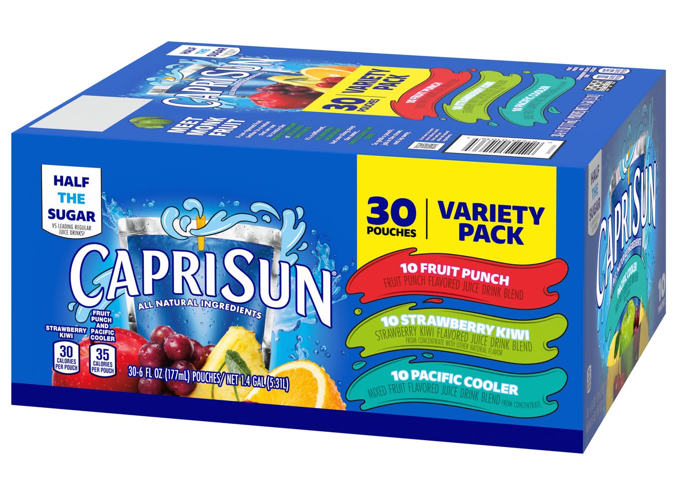 Capri Sun Juice Drink Variety pack, Fruit Punch-Strawberry Kiwi-Pacific Cooler (30 x 6 fl oz)